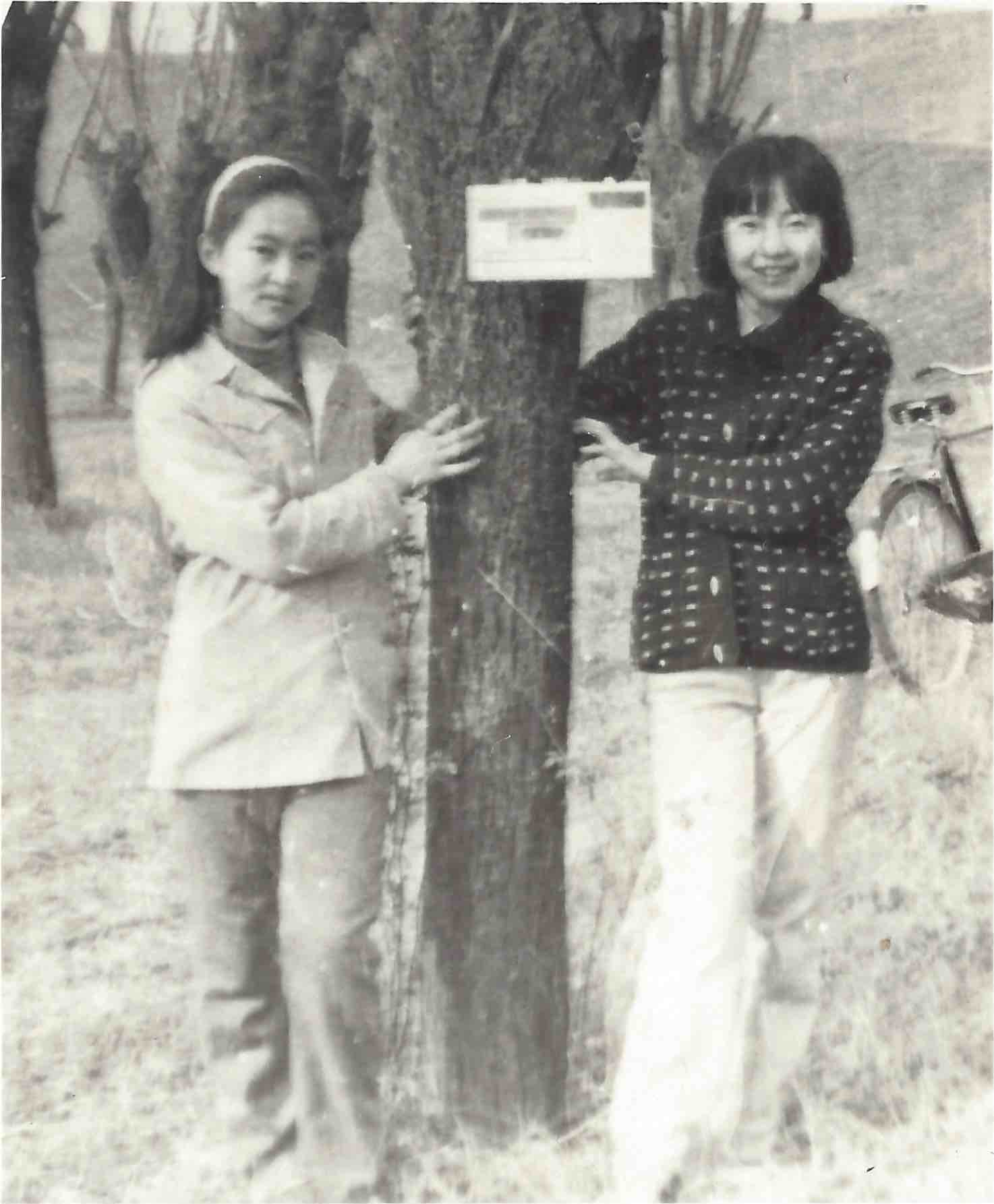 初三的一个周末,我瞒着父母跟几个同学骑自行车去郊区玩,这中间也有艳萍。那时候照相是很奢侈的事,一般都是去照相馆。那天是谁带的相机不记得了,不过给大家留下了几张难得的在郊外的照片。其中一张是我和艳萍站在大树两边,大约是最早的合影。照片是黑白的,也比较模糊,像是摄影者自己在暗室里洗出来的。好在照片总算是保留下来,也是珍贵的记忆。我后来问她,有没有更多那时候的照片,她说很少,可惜那段青春时光没能留下来。我只能在脑海里忆起她夏天穿粉红色的衬衣,冬天穿天蓝色羽绒服的美丽身影。