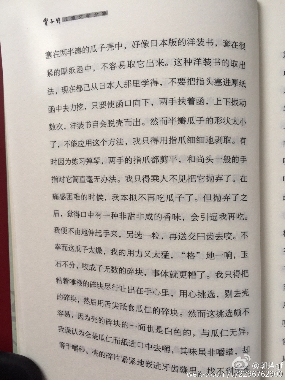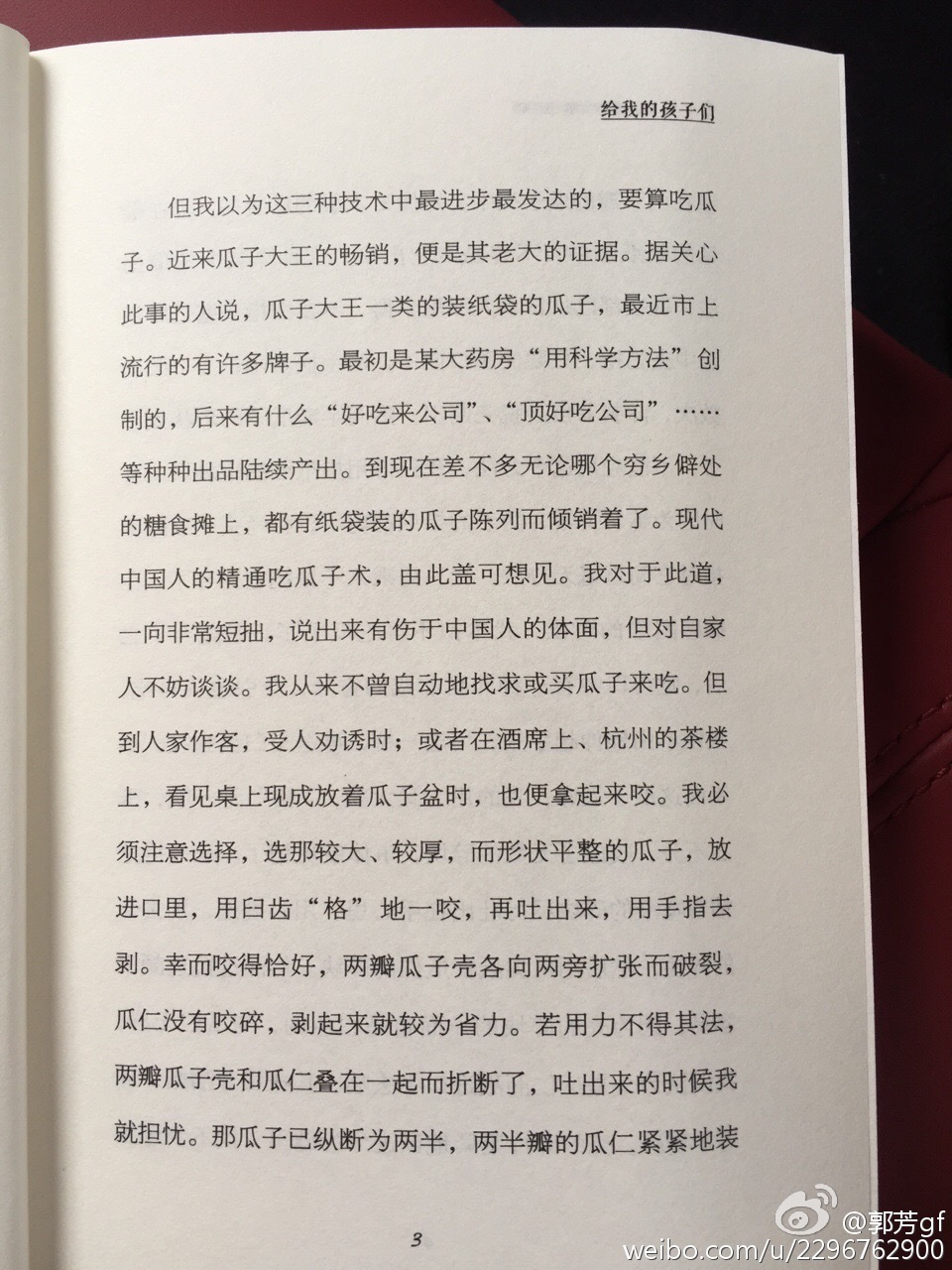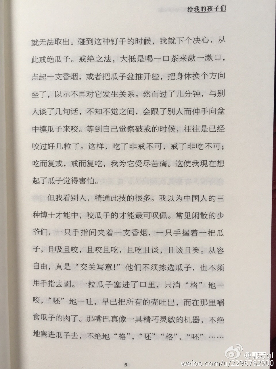 读丰子恺的文章“吃瓜子”,为先生细腻生动的描写所折服,读来不禁拍案叫绝,会心一笑。好多年没有嗑瓜子了,可是文中说起的瓜子断两半,咬的粉碎的尴尬情形都经历过,宛若又重新体会了一番。如今超市里,瓜子仁往往都事先剥好,按瓶卖。记得刚开始见到的时候,那叫讶异,这要自己嗑,一下午也不够啊。