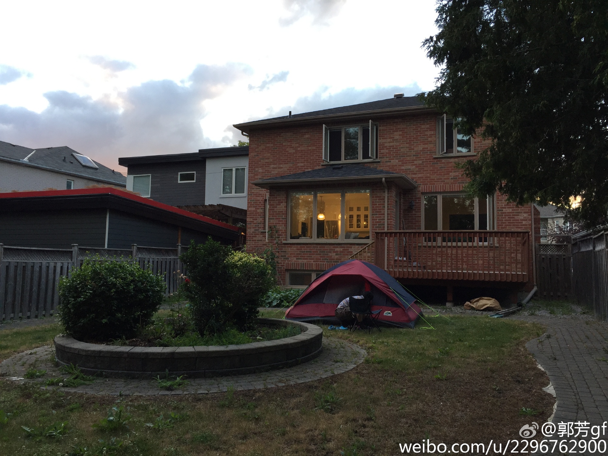 我对野营不感兴趣,嫌麻烦。弟弟今天带两个小孩来我家后院露营,带来全套装备,可把妹妹高兴坏了。帮着搭帐篷,铺床垫,讨论布置睡袋和枕头。三个小朋友进进出出,在帐篷里叽叽喳喳,别提多开心了。夜晚气温适宜,大约十八九度的样子。月光明亮,浮云作伴,透过松树洒下来;声音渐渐低下去,一片静谧。