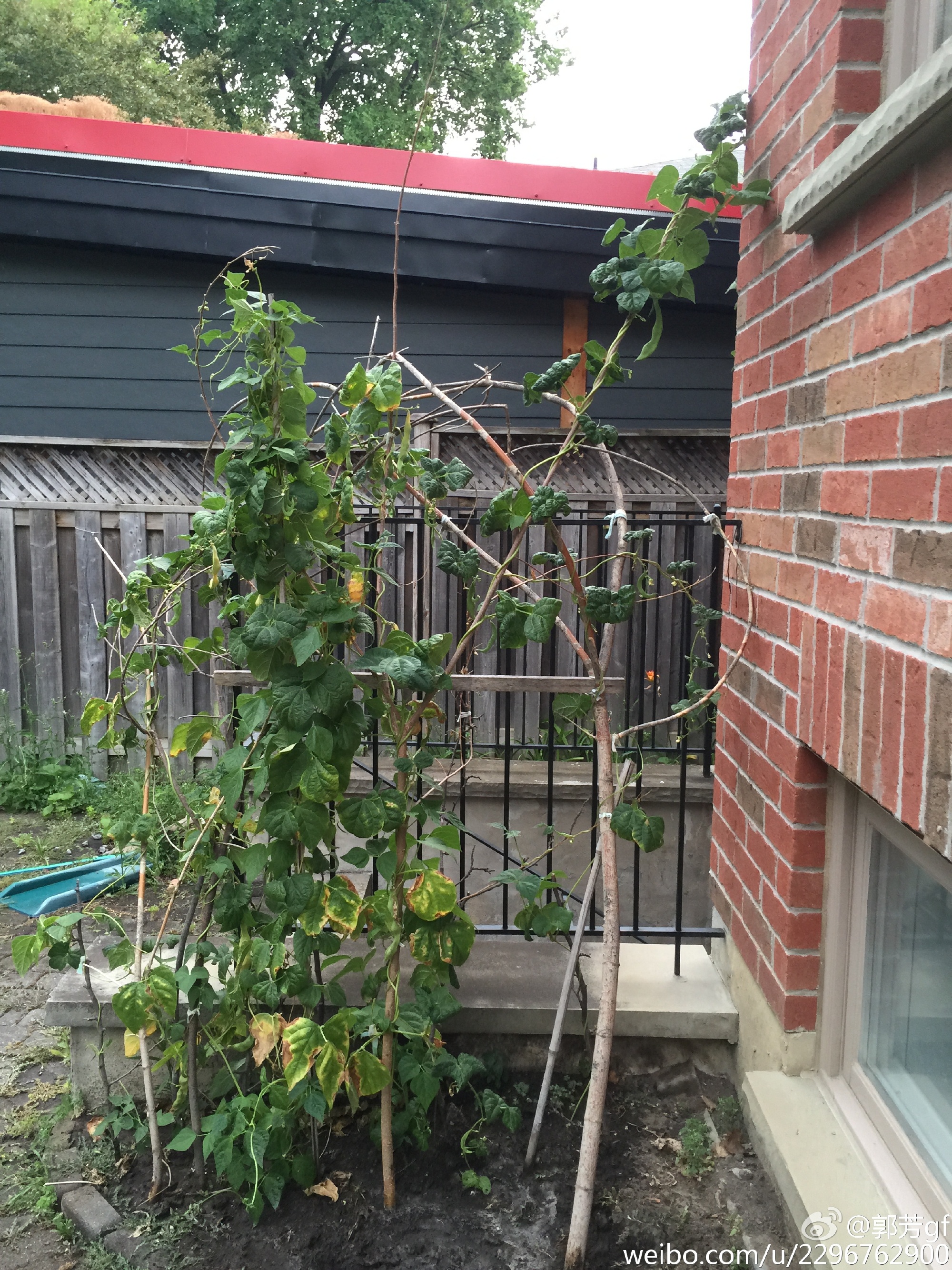 后院疏于打理,靠近房子有两小块地一直空着。爸爸说可惜,帮我一块种了扁豆,另外一块则埋了土豆,说都是容易长的植物。平常也没有施肥,就靠埋一些瓜皮瓜瓤各种菜类厨余做肥料,居然都长起来了。意外的惊喜是,不知道埋了什么种子,另外长出一种植物,叶子铺满一地,今天看到瓜都结出来了,像是香瓜。