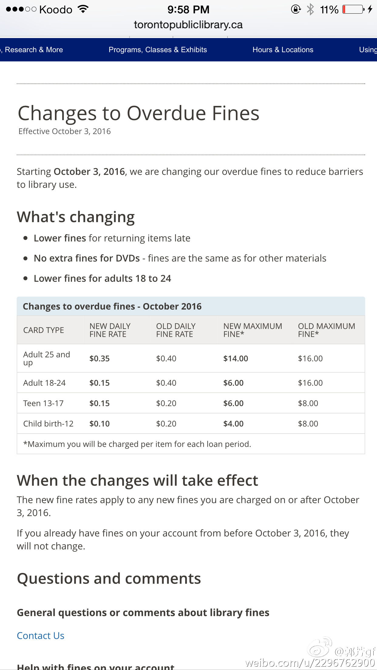 虽然图书馆有借书到期的提醒,时不时还是会忘了续借。两年前罚款从每本每天10分涨到20分,立马感觉数目大了,尤其跟孩子们借书都是几十本几十本的借。每每想就当捐款了,毕竟借书免费,省了多少买书的钱。昨天上线,惊喜发现按10分一本罚款;仔细一看,最近刚降价,目的是减少阻碍,鼓励多使用图书馆。