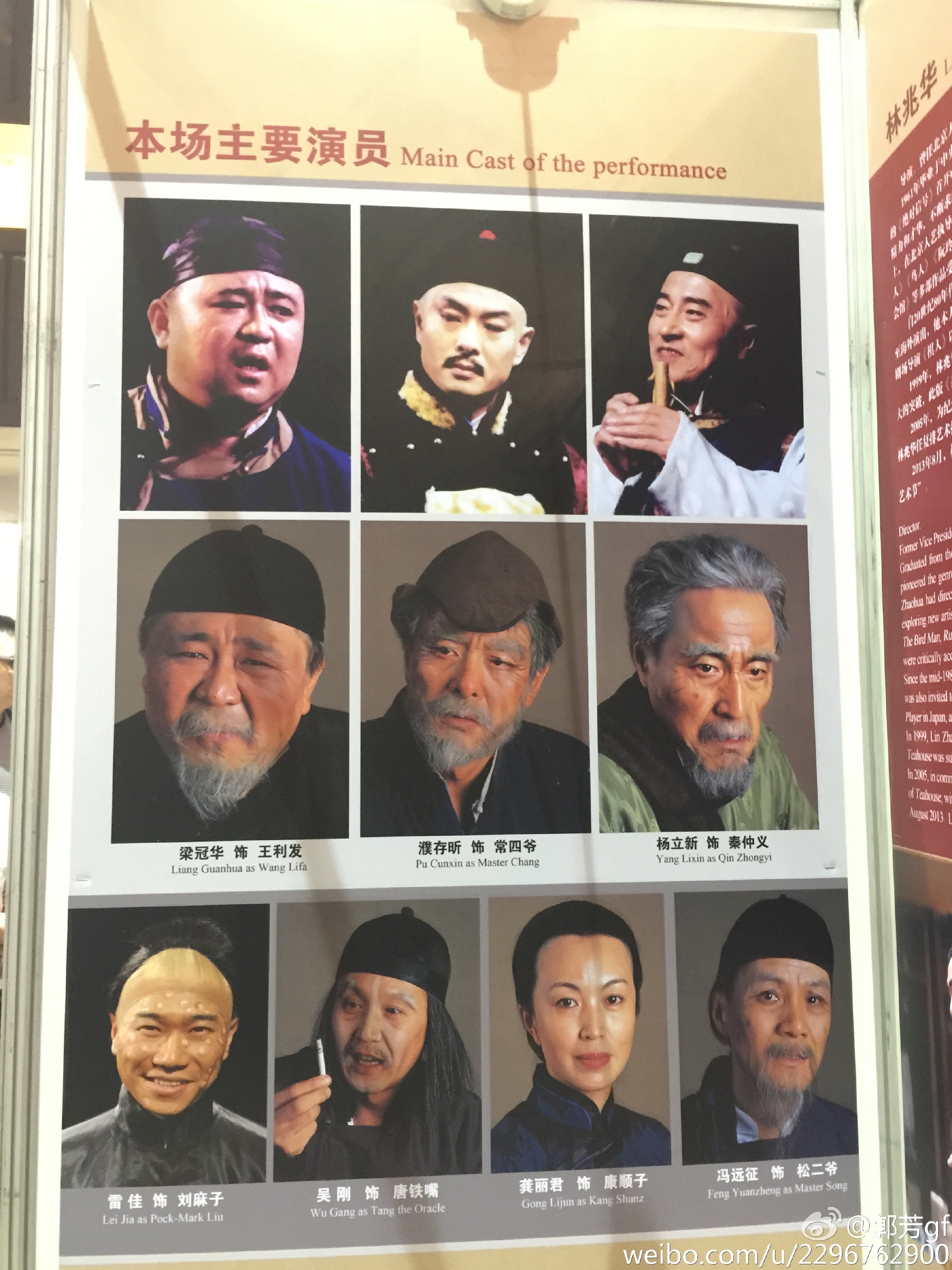 周三冒着秋雨跟女友一同去看话剧「茶馆」。北京人艺的经典话剧果然精彩。演员的台词功力真是了不得,中气十足;举手投足之间,就在这小小舞台展现出跨越五十年的人间百态。从清末到民国至解放前,直让人感叹生活之艰难,时代大潮下人之渺小无奈。看得眼眶湿润,惆怅难已,人生倏忽几十年就这样过去了。