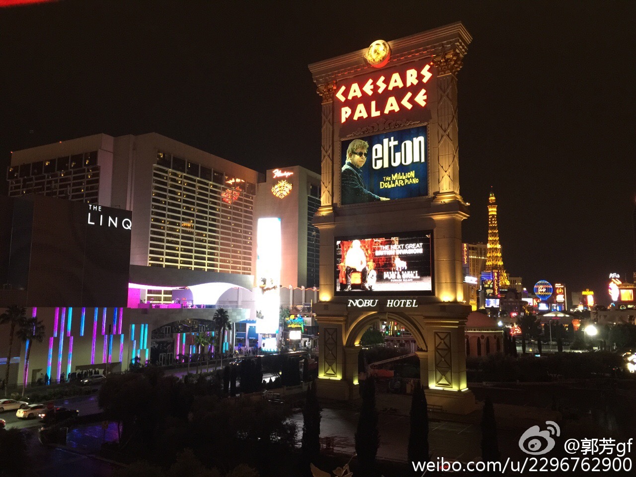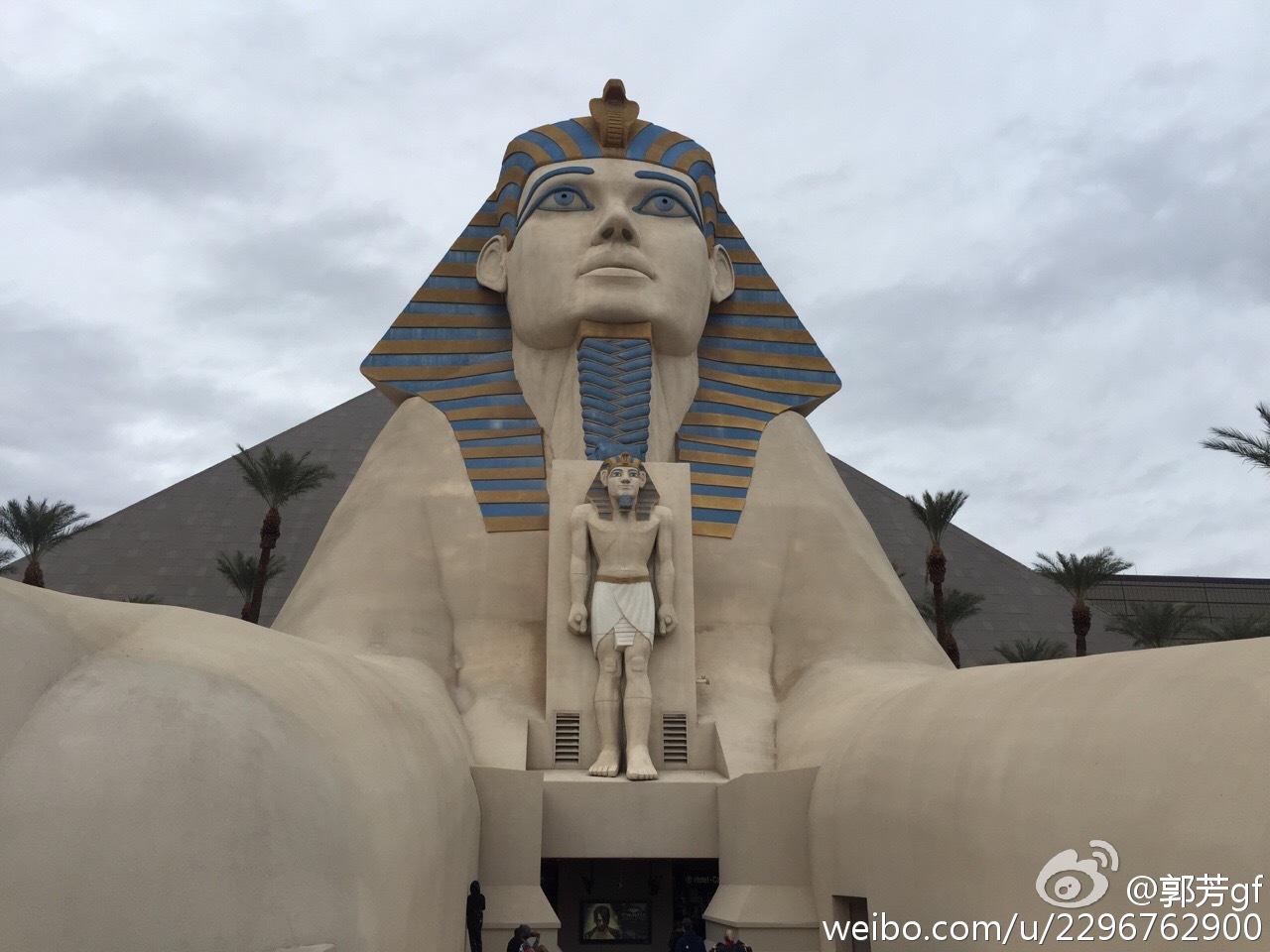 走了很多路。酒店加赌场加商场的模式,导致每一家都巨大,到哪儿哪儿都要走很远,即便是有小火车联通。酒店各有特色:Wynn和Caesars Palace奢华气派,Venetian的室内河道和Paris的蔚蓝天空则很有风情。我感觉最具特色的是Luxor。我们住在四季的37层,从房间就能看见Luxor通体黑玻璃的金字塔造型,金字塔前的巨大人面狮身像在夜晚还会射出一束强光直冲云霄。