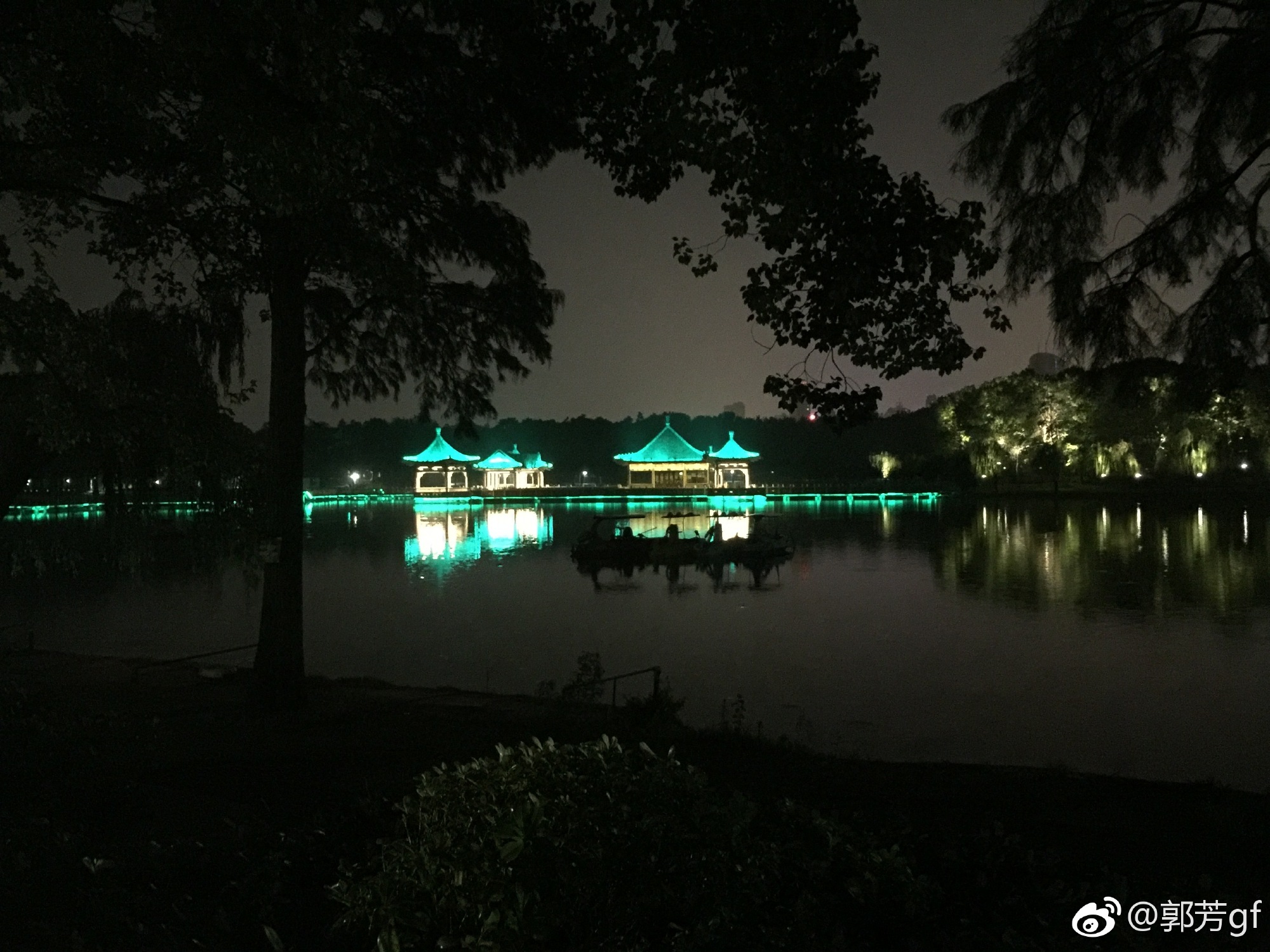 请同学的妈妈下午五点多帮忙送去码头,我八点二十左右去接。停好车,走到码头的时候,正好望见她们的船返航归来。一船的女孩子穿着定制的橙黄色套头衫,在船上欢呼雀跃。彼时夕阳尚未完全沉入水中,却躲在一小片水墨似的浓云背后,直把云映成金黄。蓝天,云彩,船只,桅杆,浮光漾漾的水面,竟然在繁华的都市边营造出大海的气势。我走近岸边,观察到果然如新闻所报,今年雨水多,湖面比往年高了许多,感觉比地面也就低十厘米左右。