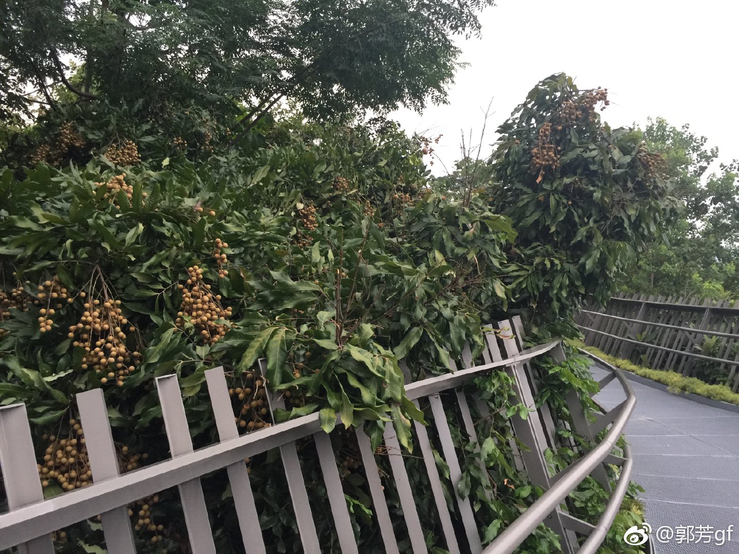 最为惊喜的是见到龙眼树,挂着累累的果实,就在栏杆边,伸手就能够着。我只见过超市里的龙眼,挂在树上还是头一回见。没想到一根树枝上就能密密麻麻长这么多!在多伦多,龙眼算稀有水果,标价不菲,想来越过万里重洋,身价提高也是应该的。