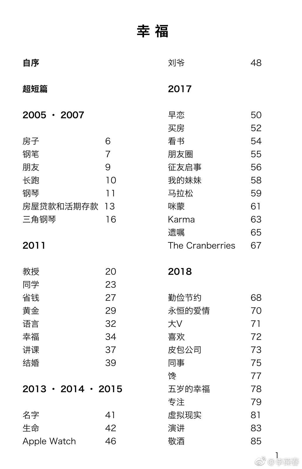 葆春上半年把微博的文章整理,汇集印成了纸质书《幸福》。捧在手里,厚厚一本,泛黄的纸张,文字仿佛还带着油墨香,感觉太棒了。