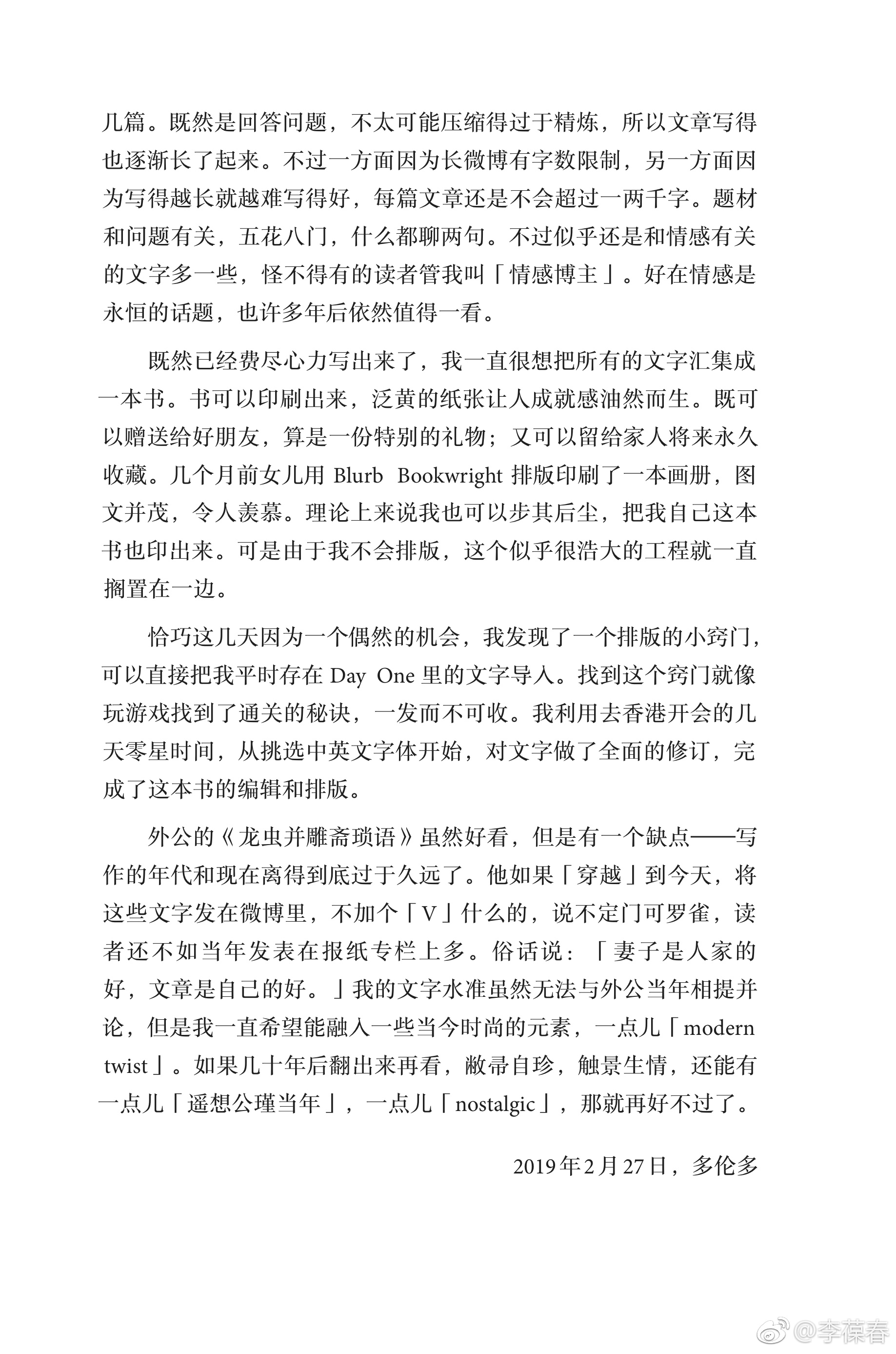 葆春折腾着,要把这些年写的文章和问答,整理出版成一本纸质书,图个新鲜,也图个乐子。自己当作者是自然,自序也一蹴而就写好了,现下再当编辑和美工。