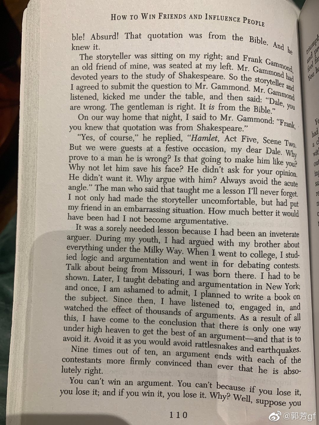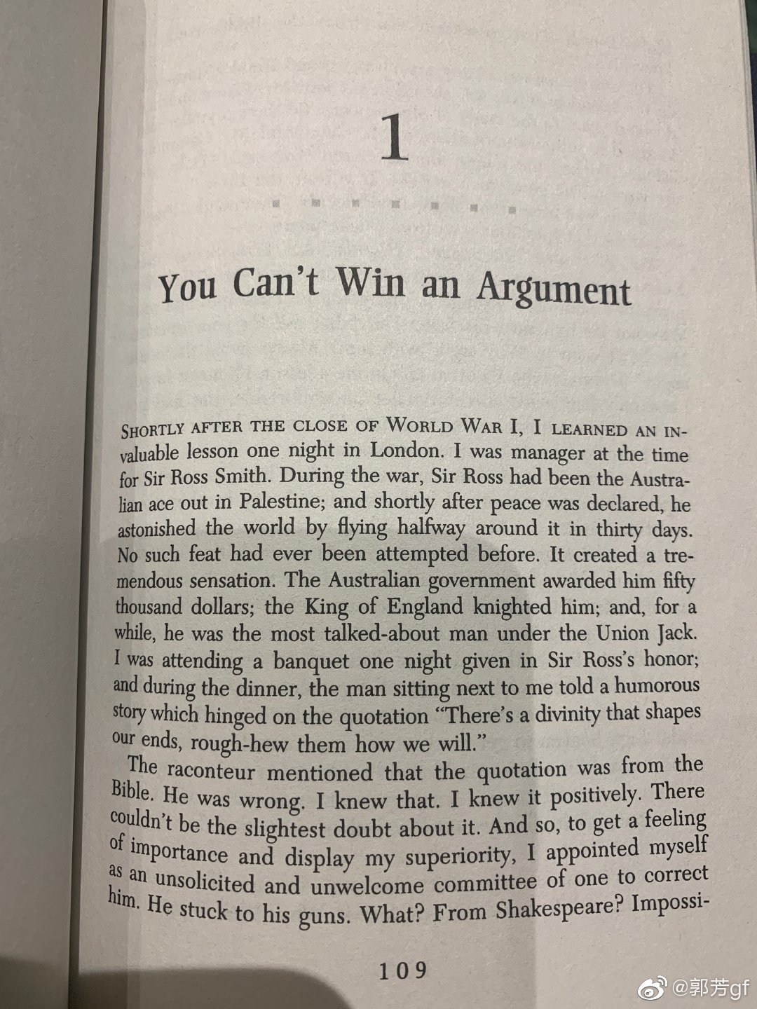 我觉得卡内基的做法是对的,确实没必要起无谓的争论。可是,一想到故事里旁人的深一层的想法(我想卡内基绝不会有这样的念头),又觉得指出错误也是一种慈悲。