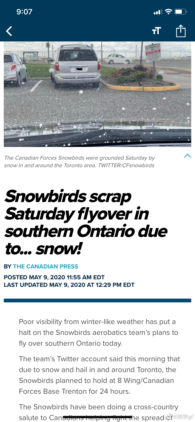 一早起来,家中暖气吹得正旺,只见窗外雪花飞舞。想想已是五月九日,即使对于多伦多来说,也算得上稀奇。原定今天的雪鸟飞行表演,也不得不遗憾地取消。