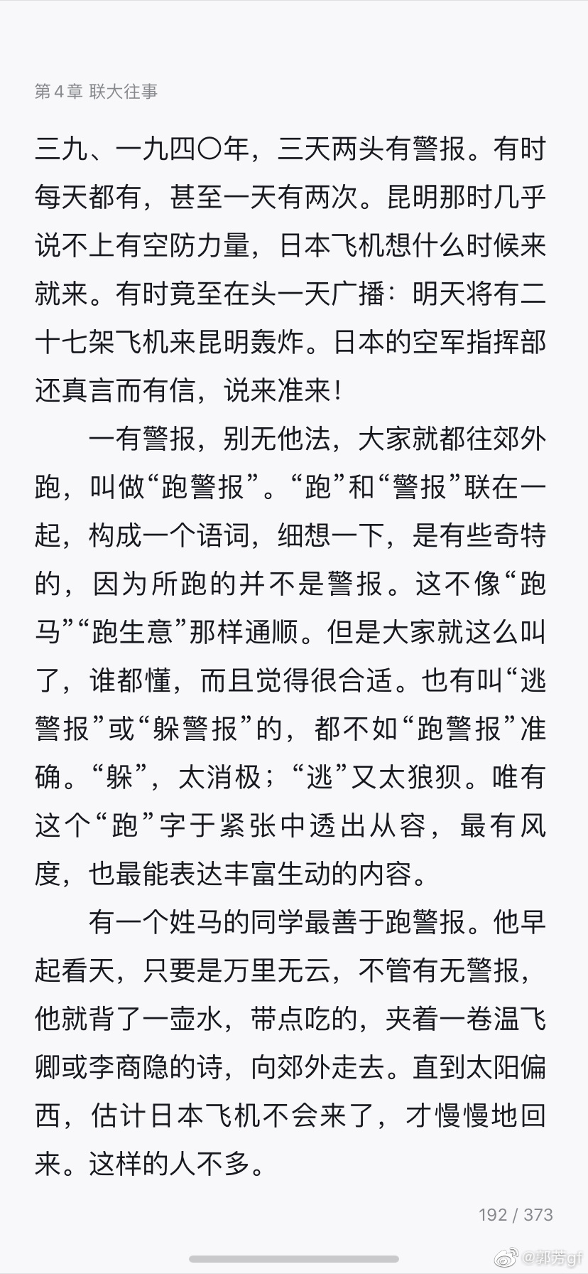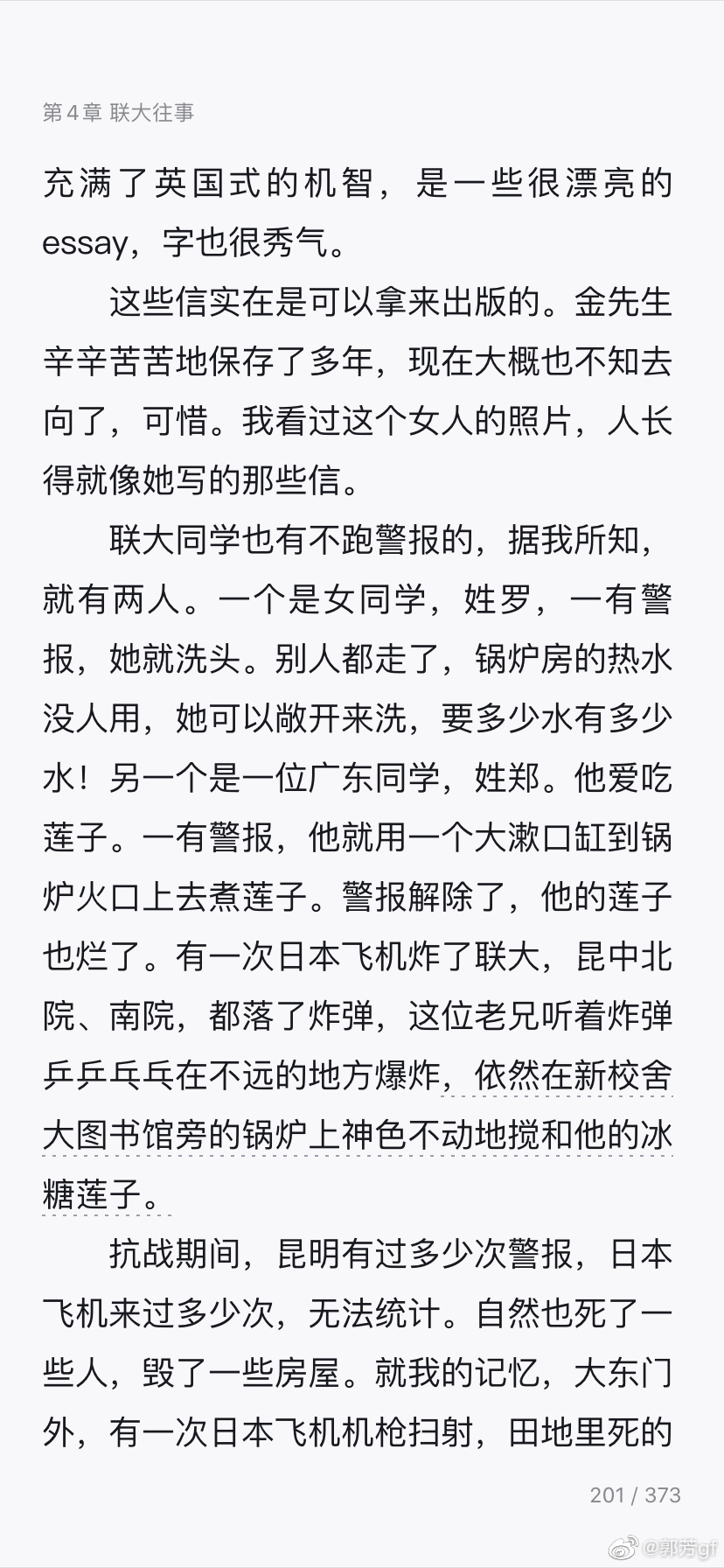 忍不住大笑。实在是汪曾祺老先生写的《联大往事》太过幽默生动。跑警报时不忘煮冰糖莲子,就是他文中写的,是他一位广东同学所为。看来电影的编剧就采纳了这个小细节,也算是反映了一定的现实。