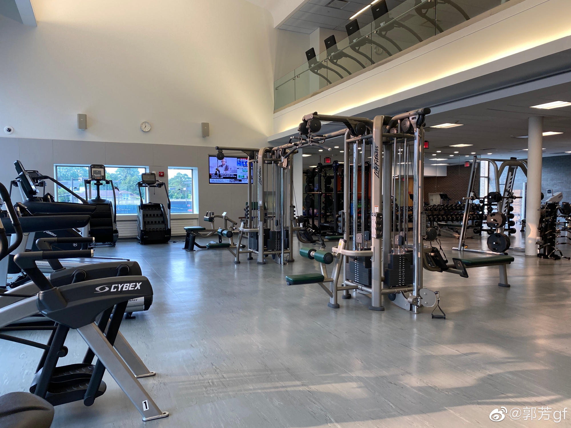 健身房里的器械重新摆放了位置,距离宽敞很多。只有一位男士在举杠铃。窗外依旧是郁郁葱葱的树林,傍晚的阳光柔和地透过巨大的玻璃窗,令人感觉宁静安详。那一刻,有欣喜若狂,更有感慨和遗憾,似乎匆匆一年的时光,从生命中被偷走了。热身之后,把喜欢的器械都练了一遍,大汗淋漓,可是无比欢畅。太喜欢了。