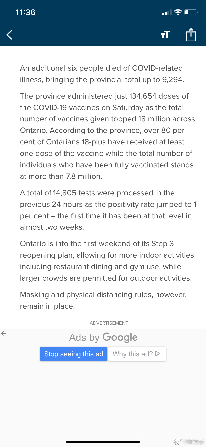 今日安省检测出495例,其中380例未接种疫苗,115例接种过,检测阳性率1.7%。希望数字保持稳定,下降就更好,今年能完完整整打完一个赛季。 郭芳gf的微博视频