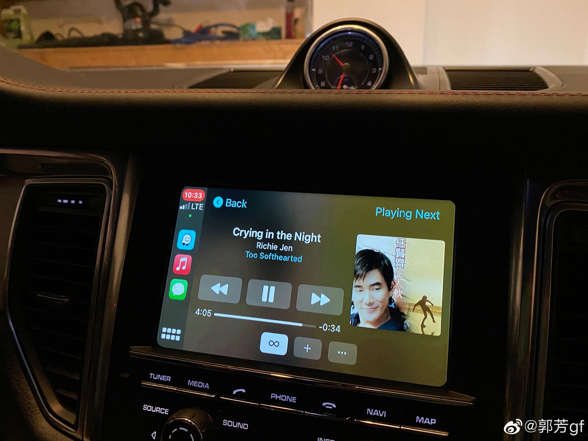 车里新近装了CarPlay,手机能够直接连接投射到车里的大屏幕,清晰明亮。尤其听音乐的时候,中文歌曲的名字能够以中文显示,感觉真是太棒了。