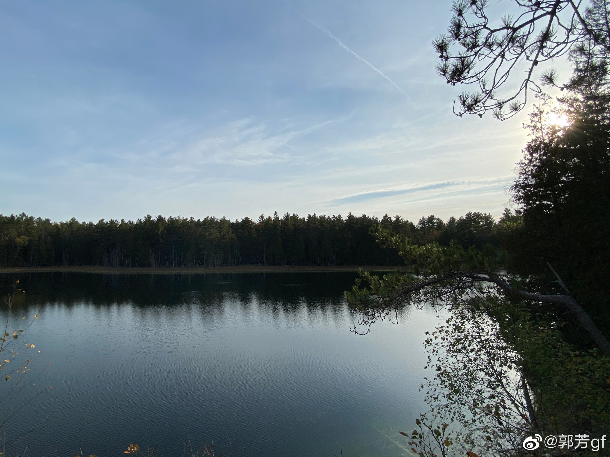 湖边提示,不允许划船游泳,原来是怕搅动了底层的湖水。我就想,那一片密林一定也起了作用吧,挡住了大风啊。