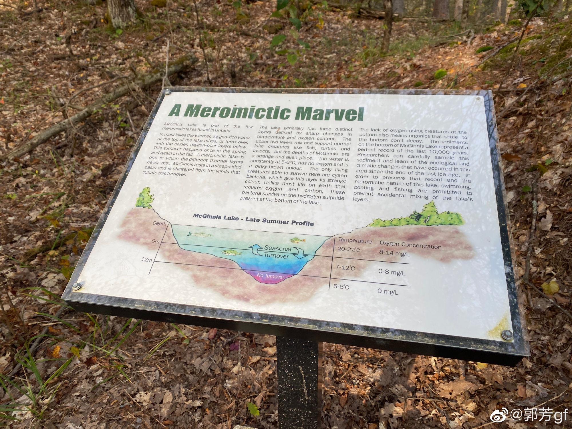 什么意思呢?就是一般的湖,下层和上层的湖水,在春秋两季,会混合循环,水的氧气和温度都会混合变化。但是这个小湖,在十二米以下,有一个深坑,深坑里的湖水不参与循环,含氧量为零,也就没有什么生物存活,它在湖底的沉积物甚至能反应上万年的地质与气候变化。